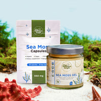 Ontdek de veelzijdigheid van Sea Moss in zijn puurste vorm met onze Sea Moss Essentials Bundle. Deze combinatie van onze geliefde Mango Sea Moss Gel en de handige Sea Moss Capsules biedt jou het beste van twee werelden: de pure, volle kracht van de gel en het gemak van capsules. Een praktische keuze voor iedereen die Sea Moss eenvoudig in zijn of haar dagelijkse routine wil opnemen.